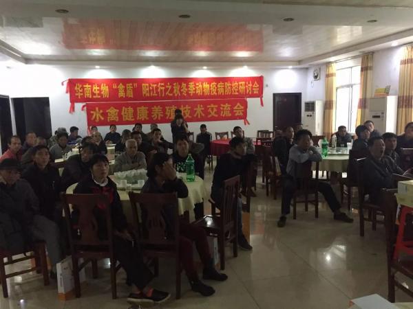 華南生物“禽盾”陽江行之秋冬季動物疫病防控研討會--暨水禽健康養殖技術交流會勝利舉辦
